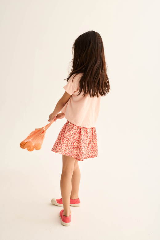 Animal print cotton shorts tomato is een speelse en trendy meisjes short van het merk Cozmo. Deze opvallende short met all-over animal print in een warme tomaatrode tint is perfect voor zonnige dagen en vrolijke zomeroutfits. Dankzij de volumineuze pasvorm lijkt het broekje bijna op een rokje, wat zorgt voor een extra girly en luchtige uitstraling.