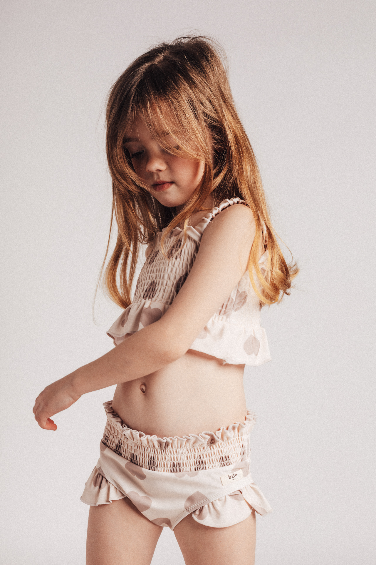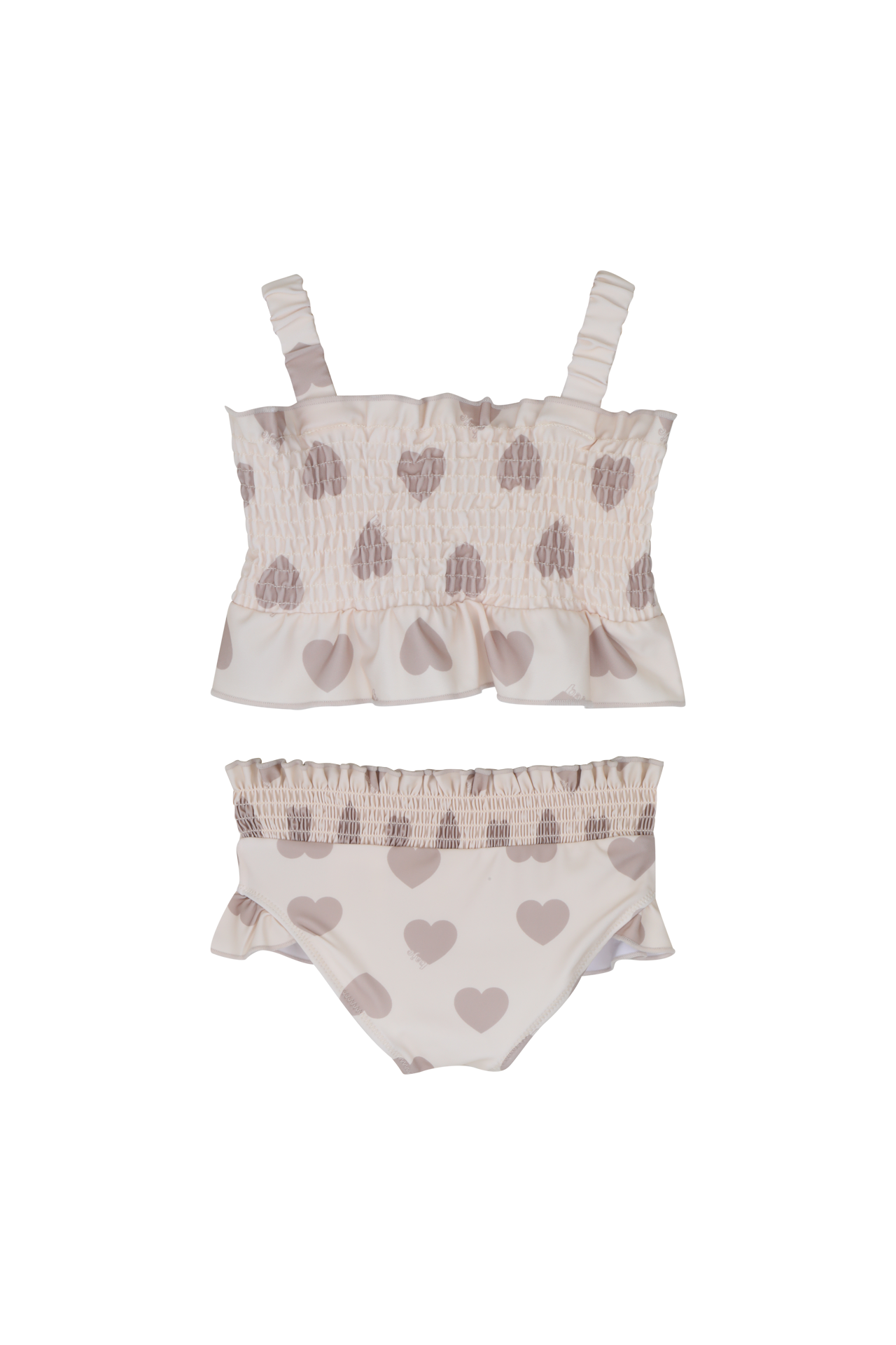 Rosi, een lieve bikini met hartjesprint en speelse ruffle details. De gesmokte top zorgt voor een comfortabele en aansluitende fit, terwijl de elastische band van het broekje mooi meebeweegt. Leuk te combineren met shortje Ize of rokjee Yulia, perfect voor de zonnige stranddagen.