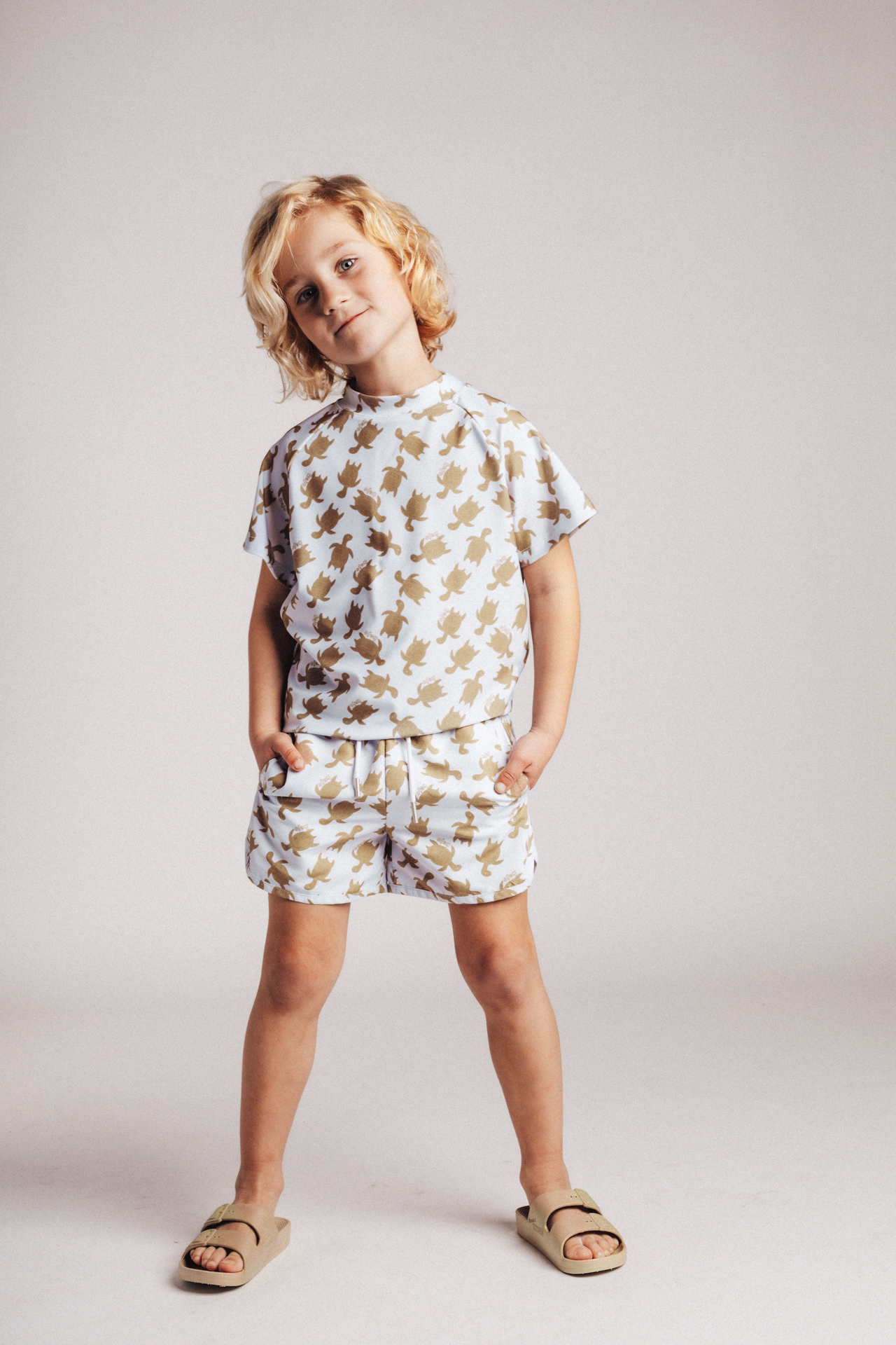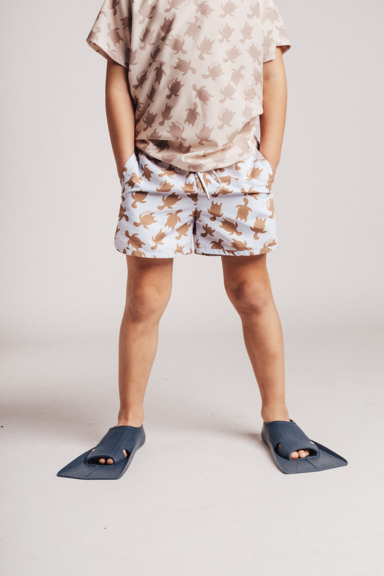 Mello, een geprinte zwembroek met schildpadden, een elastische tailleband en koordsluiting zorgen voor een perfecte zwembroek en pasvorm. Verkrijgbaar in verschillende kleuren en prints, van rustig tot speels. De lichte, sneldrogende stof zorgt voor optimaal draagcomfort ideaal voor strand- en zwemdagen.