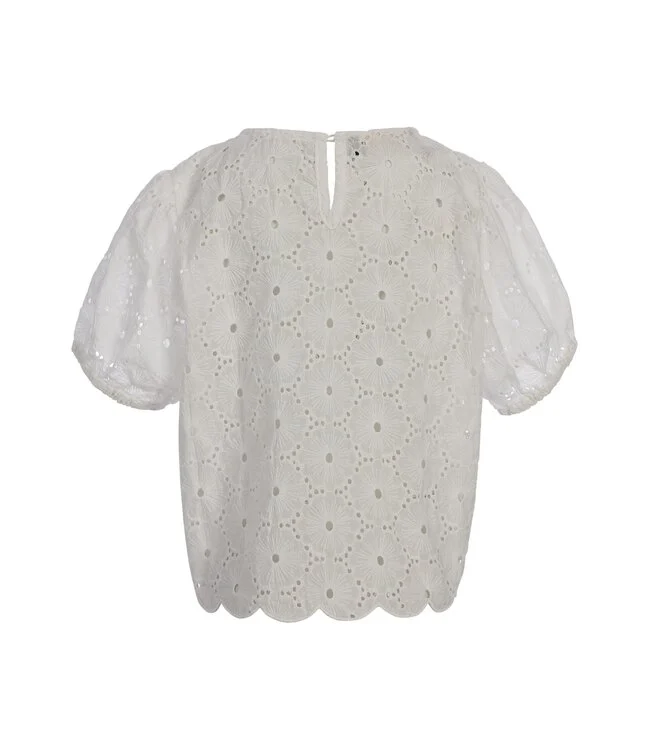 De katoenen broderie anglaise geeft de blouse een luchtige en luxe uitstraling, perfect voor warme dagen. De voorkant is gevoerd met katoen, waardoor de blouse comfortabel draagt en niet doorschijnt. Dat maakt haar niet alleen mooi, maar ook praktisch voor dagelijks gebruik.