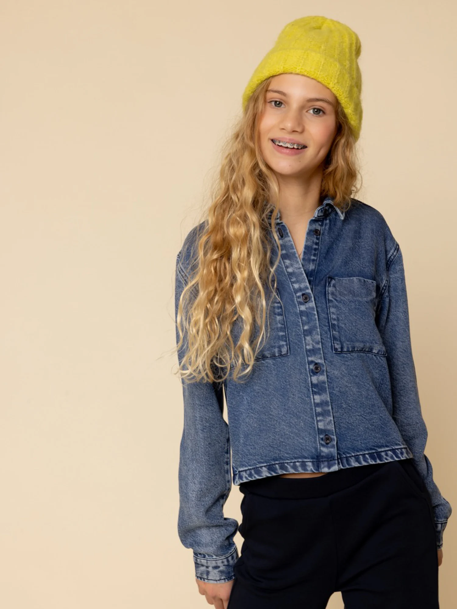Denim lyocell blouse van Looxs – deze stoere blouse is gemaakt van een zachte, soepele lyocell denim kwaliteit met een mooie washed look. Dankzij de korte lengte en loose fit heeft de blouse een nonchalante, moderne uitstraling. Voorzien van lange mouwen en een knoopsluiting bij de hals.