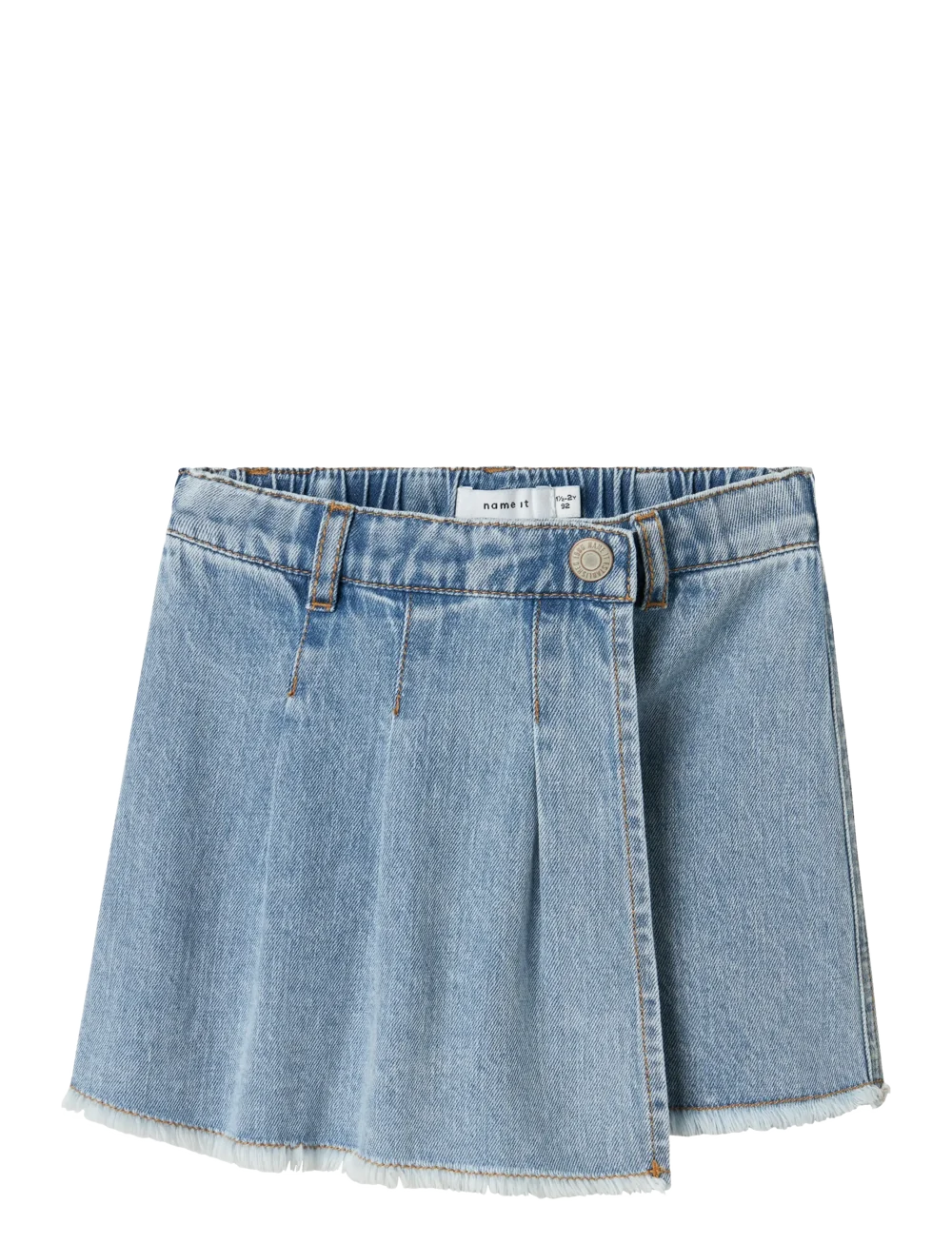 De skort heeft een elastische tailleband, waardoor hij makkelijk aan en uit te trekken is – perfect voor zelf aankleden. Het A-lijn model geeft een mooie pasvorm en de rafelrand zorgt voor een speelse, casual look. De lichte wassing maakt hem makkelijk te combineren met allerlei kleuren en stijlen. Met Name It kies je voor kwaliteit en stijl.