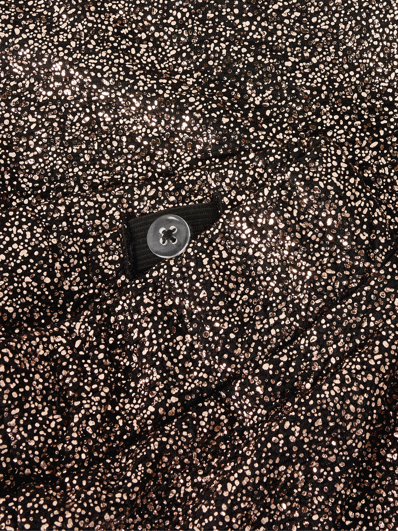 De broek is gemaakt van 95% gerecycled polyester en 5% elastaan — duurzaam, comfortabel en milieubewust in één. Combineer deze glitterpant met de bijpassende top voor een prachtige co-ord party look, of draag hem met een effen trui of blouse voor een speels-chique outfit.