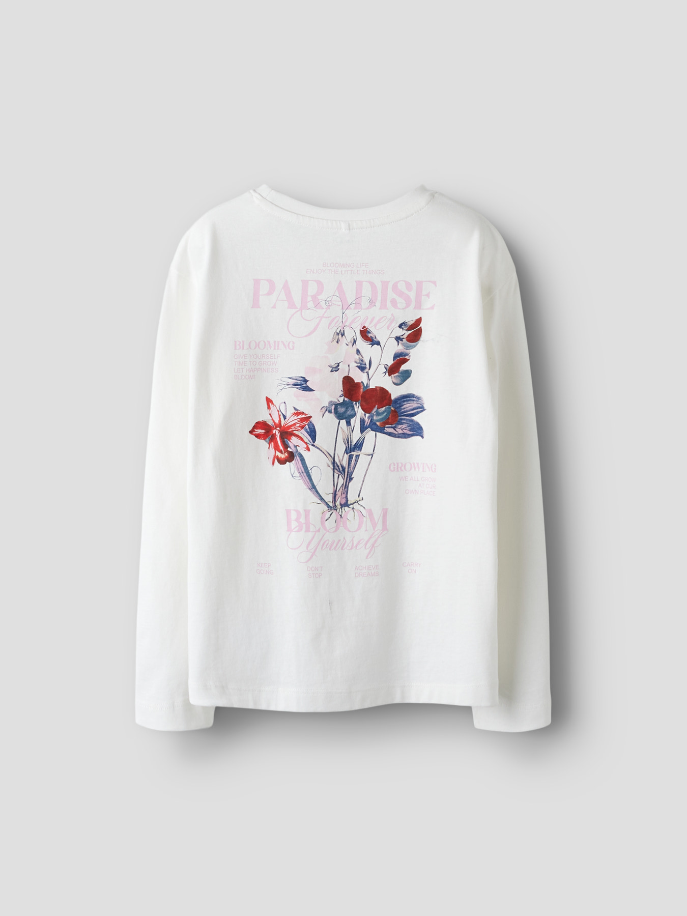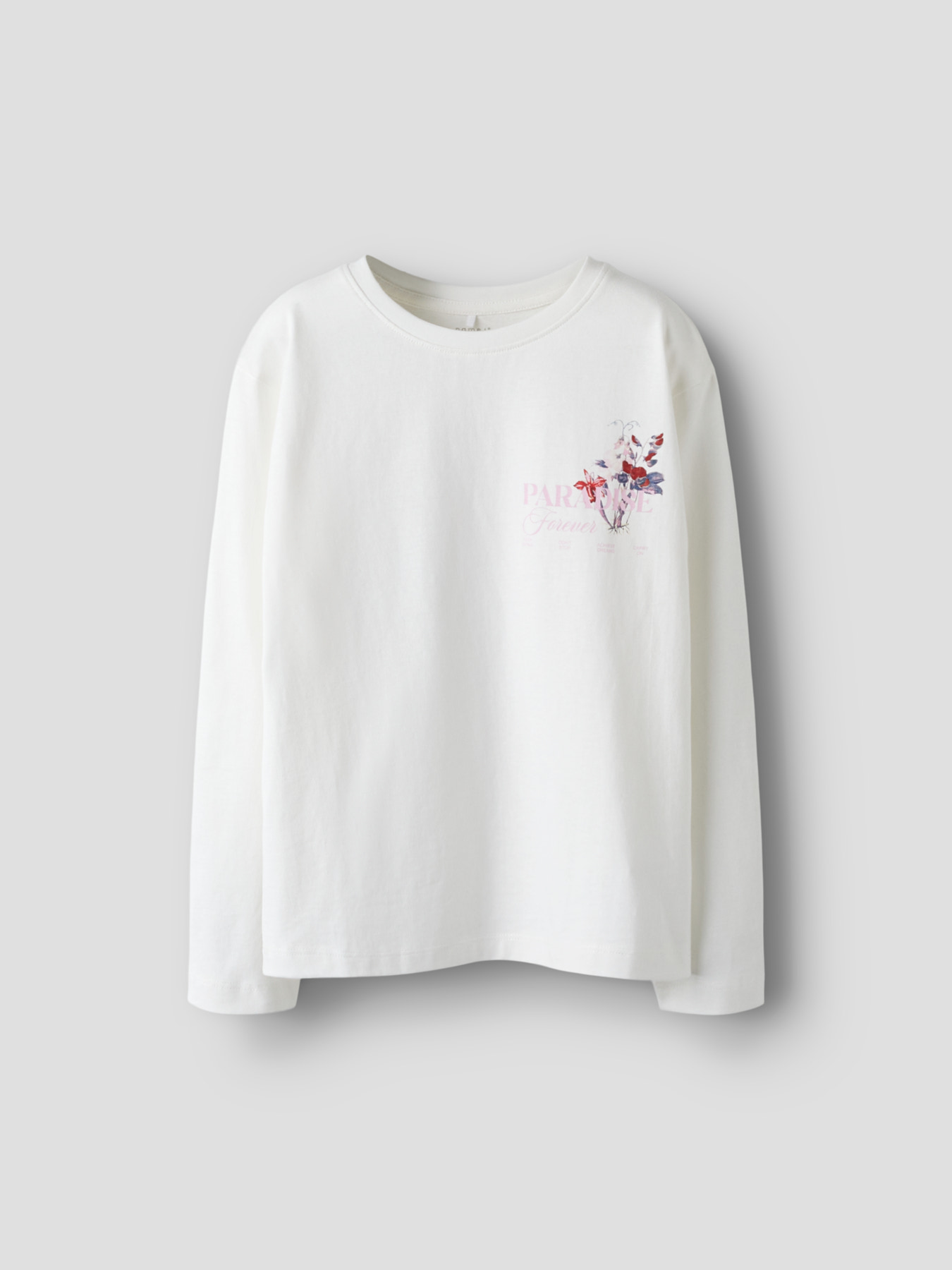 Deze prachtige Name It meisjes longsleeve is een stijlvolle keuze voor elke gelegenheid. Het shirt heeft een frisse witte kleur en is afgewerkt met een subtiele bloemenprint en de inspirerende tekst “Paradise Forever”. Zowel de voor- als achterkant zijn voorzien van deze elegante print, waardoor het shirt een modieuze en speelse uitstraling krijgt.