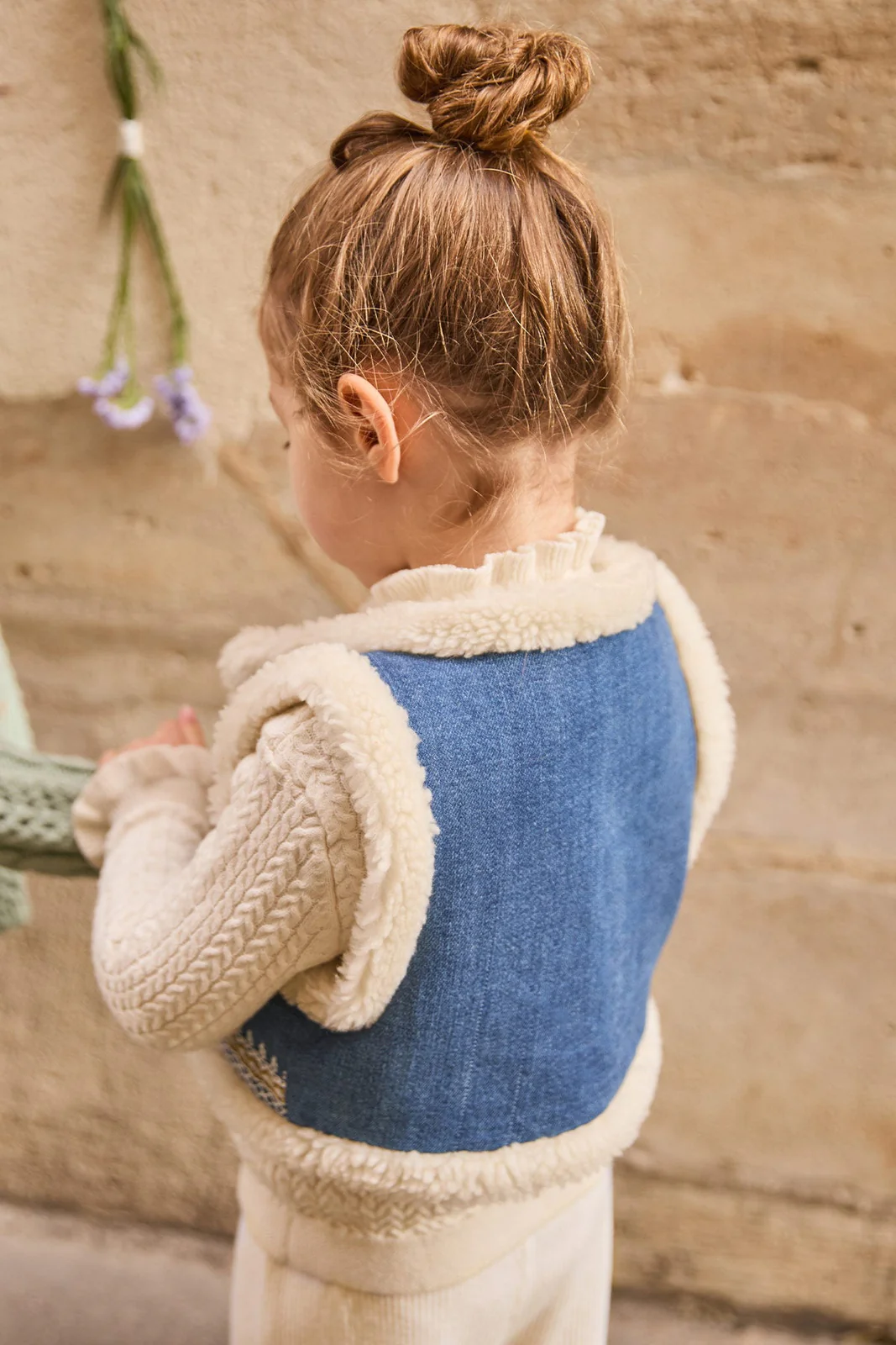 Het Librana bodywarmer van Louise Misha is een uniek en veelzijdig item dat warmte en stijl perfect combineert. Dit mouwloze vest is omkeerbaar en biedt daardoor twee draagopties: een cotton-lyocell denim buitenkant met prachtige contrasterende Dori borduursels met lurex details, en een zachte sherpa-stijl faux fur binnenkant die ook als buitenzijde gedragen kan worden.