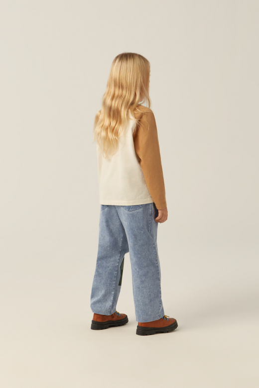 De broek is voorzien van een elastische tailleband die zorgt voor extra comfort en bewegingsvrijheid. Dit maakt de denim trousers perfect voor kinderen die houden van spelen, ontdekken en bewegen, zonder in te leveren op stijl. De rechte pasvorm en de opvallende patch-details aan de voorkant geven deze jeans een speelse, moderne twist.