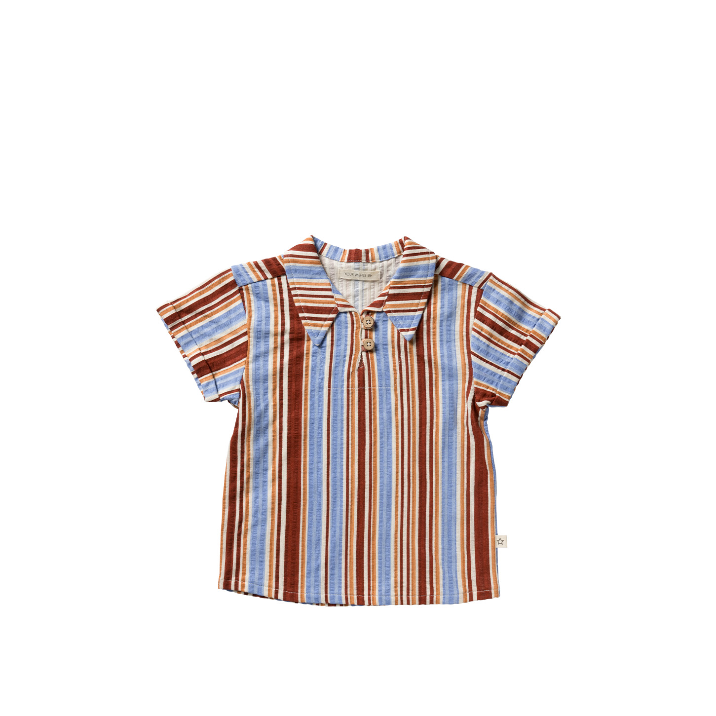 Met loops voor de kopen en een leuke omslag bij de mouwen, zorgt dit shirt voor een verfijnde en functionele stijl die helemaal bij Your Wishes past. Combineer de Listra Tropic Shirt met de Listra Summer short voor een perfecte, co-ord  zomeroutfit of match met de Worker Jeans of Denim jeans Bestel nu in maten 80 tot en met 140 en laat je jongen stralen in dit stoere en comfortabele shirt!