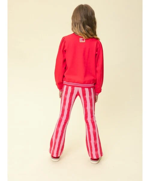 De rood-roze kleurencombinatie laat zich makkelijk combineren met een sweater, T-shirt of longsleeve. Maak de outfit compleet met een bijpassende top uit de Looxs Little collectie voor een coole co-ord look. Deze flared kinderbroek is ideaal voor meisjes die graag opvallen met een vrolijke print, zonder in te leveren op comfort.