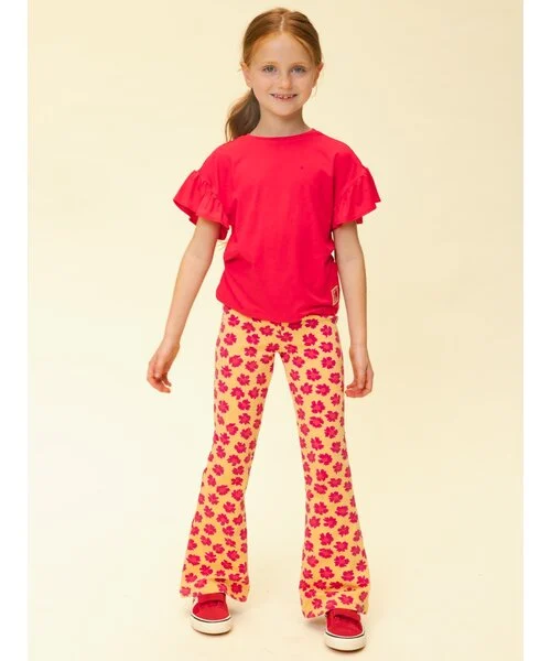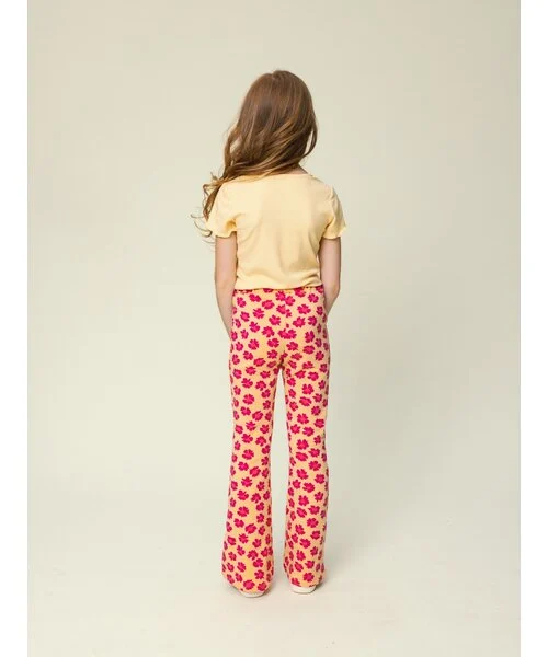Het Flared Sweat Broekje Wildflower van Looxs Revolution is een van die opvallende, vrolijke kids items waarmee je webshop meteen meer zichtbaarheid krijgt in zoekmachines voor zoekwoorden als kinderkleding, flared broekje, sweat broekje, bloemenprint en meisjes kleding. Dit model combineert een zachte, comfortabele sweatkwaliteit met een all‑over bloemenprint in pink op een zachte gele basis. De flared pasvorm en lange lengte geven een retro‑vibe die nu erg in trek is, zeker in combinatie met uni shirts, tops of sweaters.