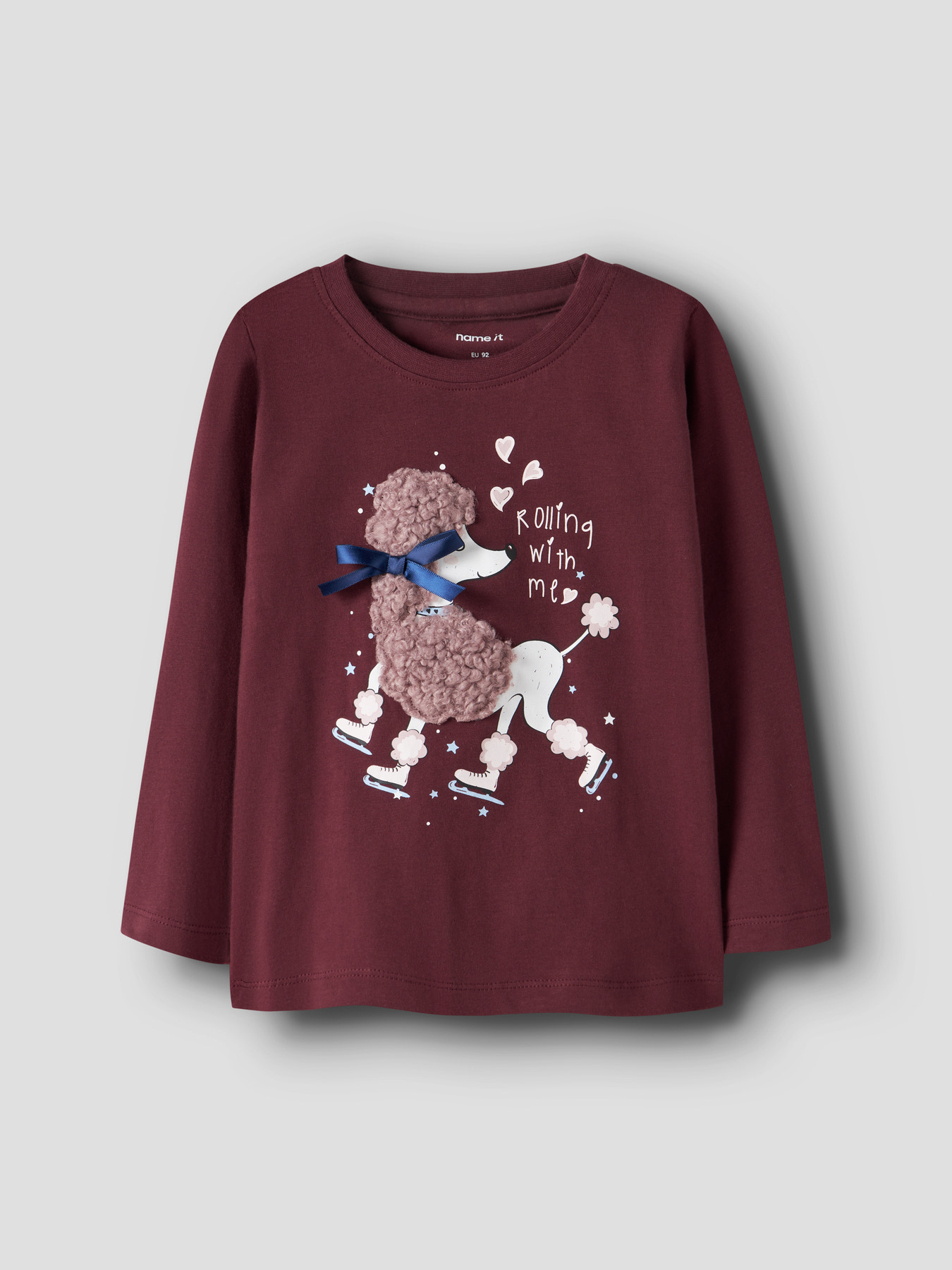 Laat je kleine fashionista stralen in deze schattige Name It meisjes longsleeve Rolling With Me. De bordeauxrode top is gemaakt van 100% biologisch katoen, wat zorgt voor een zachte, ademende stof die comfortabel aanvoelt op de huid. Ideaal voor schooldagen, speelafspraken of gewoon een relaxte dag thuis.