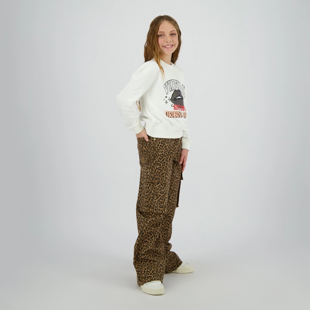 Op zoek naar een modieuze en opvallende meisjesbroek? De Vingino Cassie Leopard Cargo Spijkerbroek in de kleur Sand Animal is dé perfecte keuze voor trendy meiden die houden van een speelse, maar stijlvolle look. Dankzij de extra wide leg pasvorm en de stoere luipaardprint, is deze broek een echte eyecatcher.