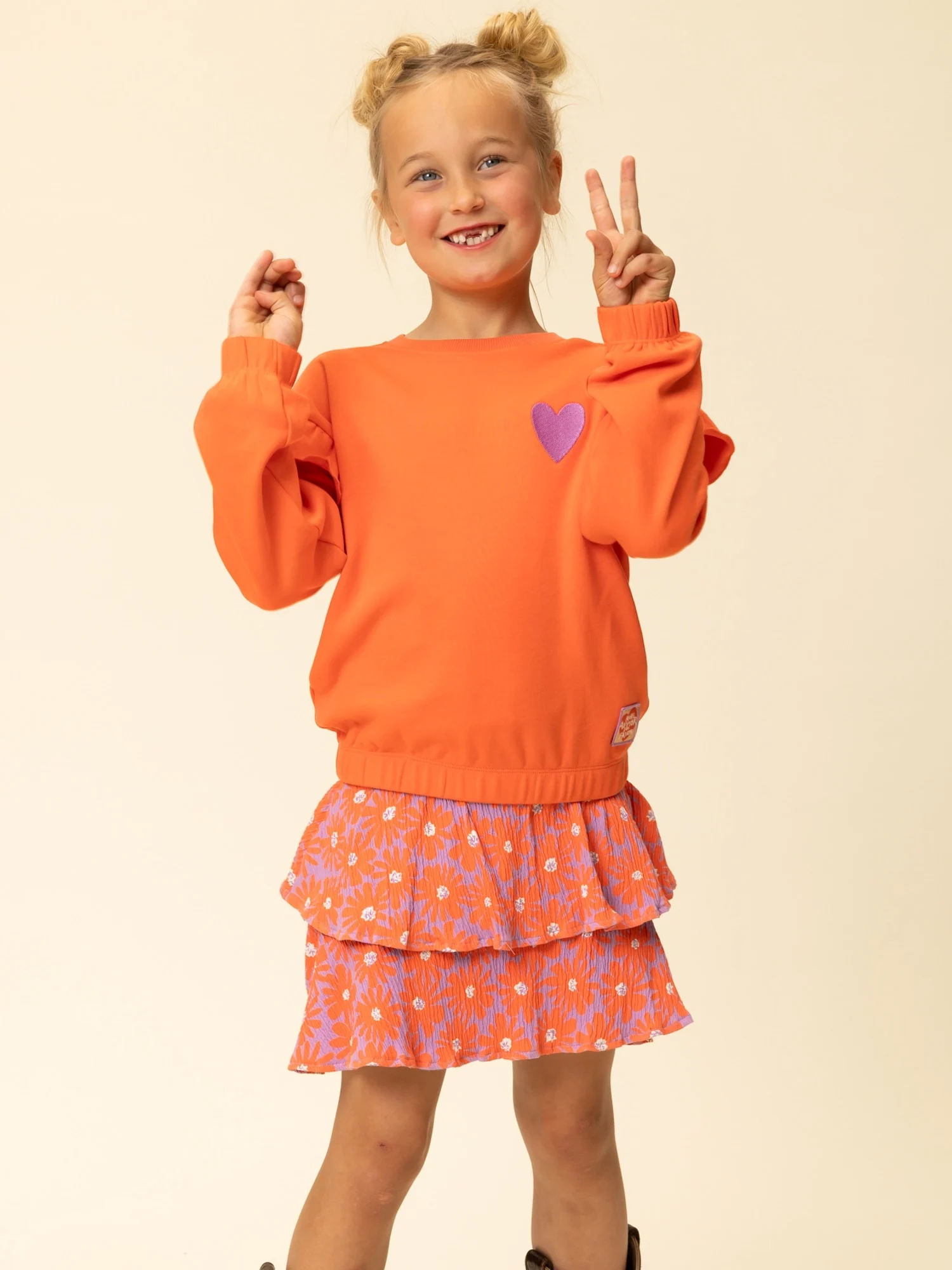 De Looxs Revolution Little meisjes sweater Amor es la Revolución is een echte blikvanger binnen de nieuwste kinderkleding collectie. Deze trendy kinder sweater in een opvallende oranje tint is perfect voor meisjes die houden van kleur, comfort en een speelse uitstraling. Dankzij het unieke design en de hoogwaardige afwerking is deze meisjes sweater van Looxs Revolution Little een musthave voor elk seizoen.