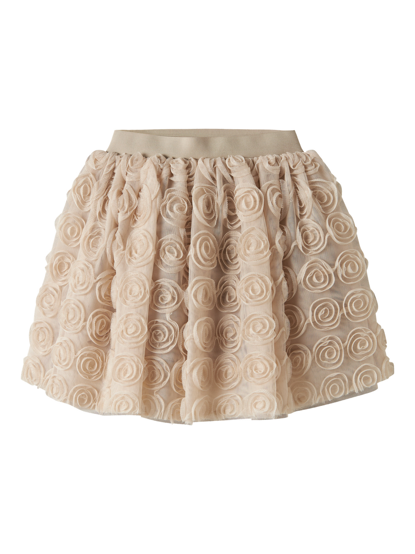 Deze Name It meisjes tule rok is een echte droom voor kleine fashionista’s! De rok heeft een elegante crèmekleurige basis en is versierd met prachtige 3D roosjes van tule, die een romantisch en feestelijk effect creëren.