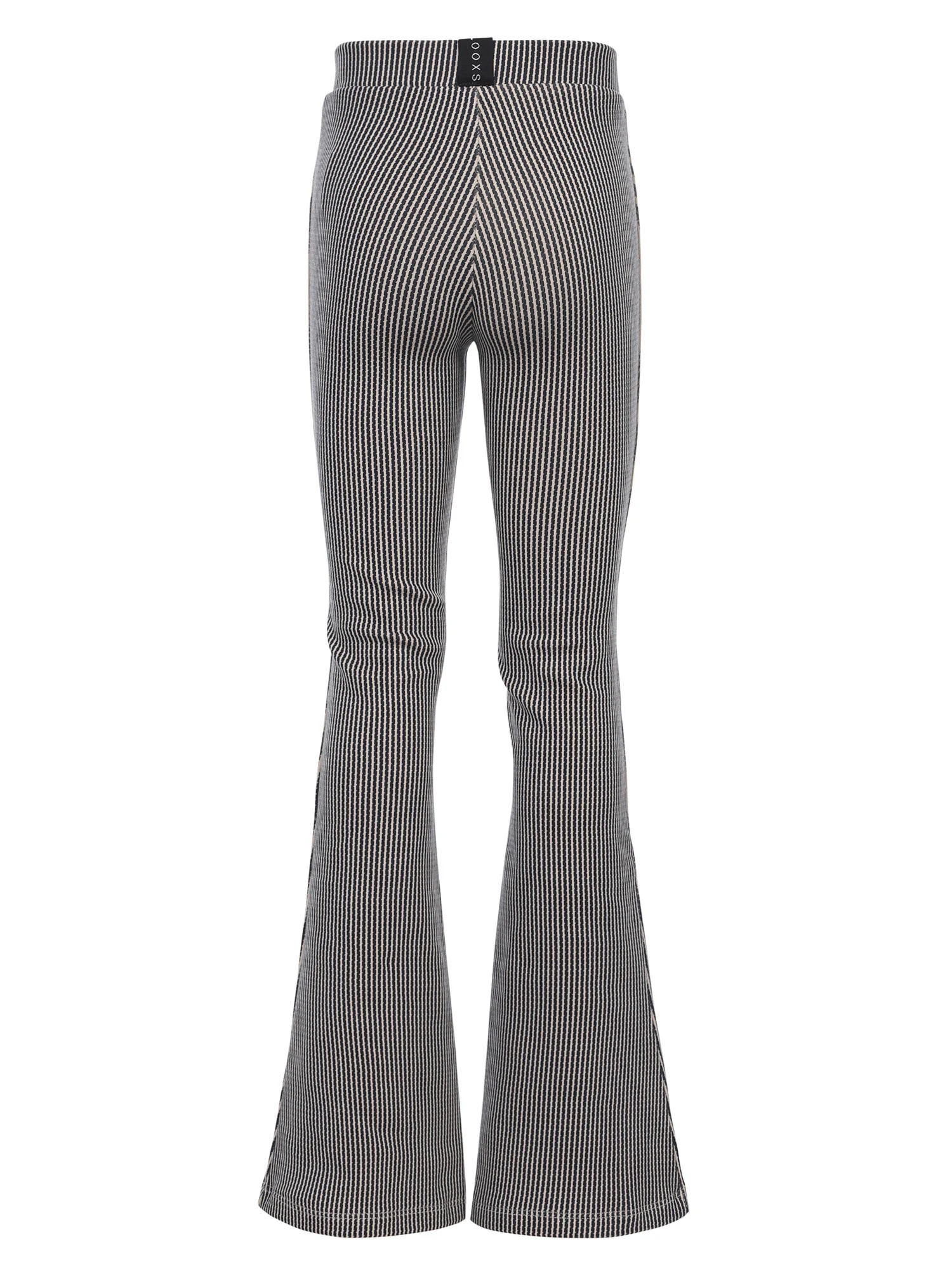 De flared sweat broek meisjes gestreept is dé perfecte combinatie van comfort en stijl. Deze trendy meisjesbroek heeft een verticale, fijne navy streep die zorgt voor een classy uitstraling. Dankzij de zachte katoen-elastaan interlock kwaliteit voelt de broek heerlijk aan en blijft hij mooi in model. De flared fit met lange lengte geeft een modieuze twist, terwijl de elastische tailleband zorgt voor optimaal draagcomfort. Deze broek is een geweldige keuze van Looxs.