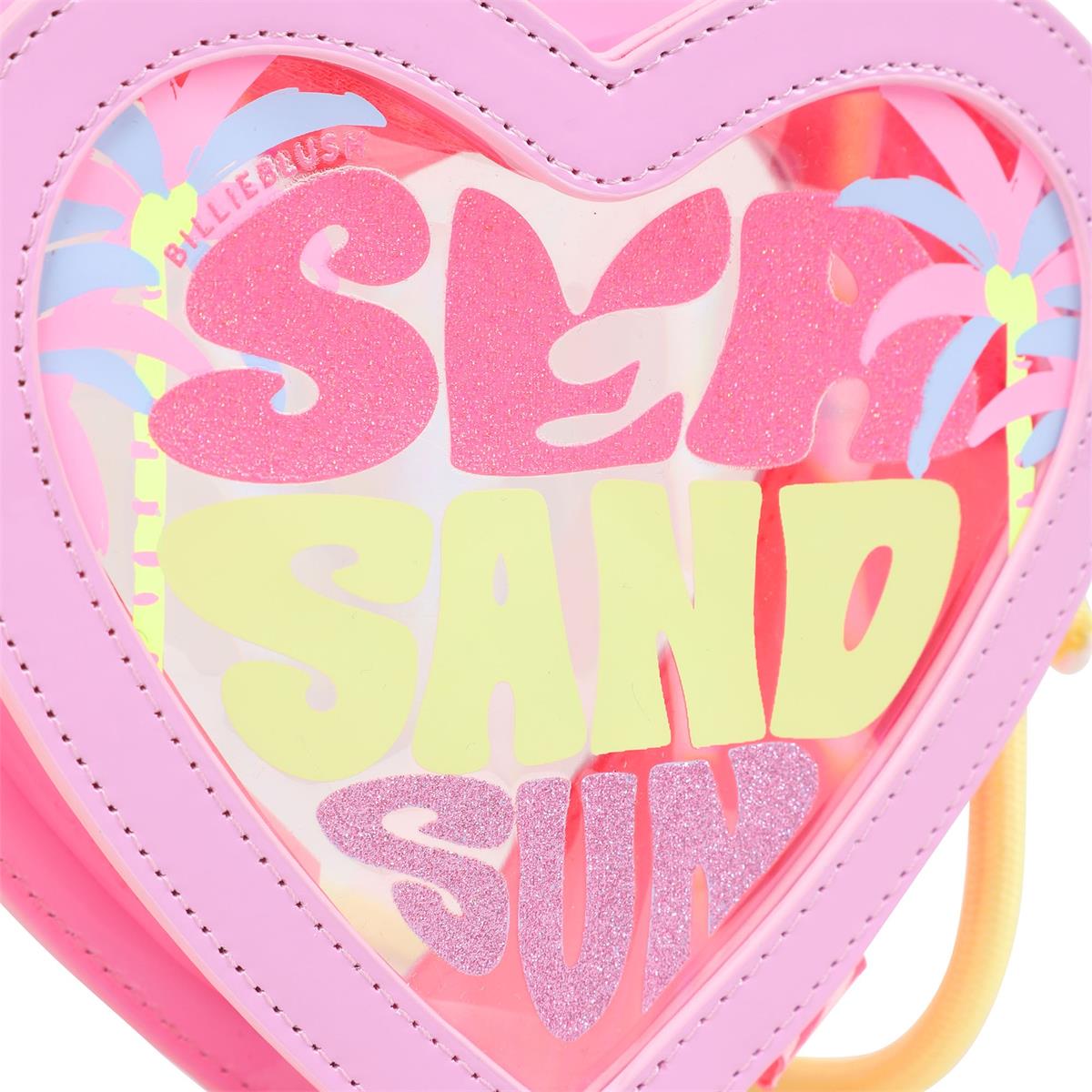 Deze roze hartvormige meisjes handtas van Billieblush is een echte blikvanger voor kleine fashionliefhebbers. Het speelse ontwerp combineert glanzend materiaal met een iriserend transparant venster, waardoor de tas een magisch en bijna sprookjesachtig effect krijgt. De glitterillustratie aan de voorkant vangt het licht bij elke beweging en laat de tas schitteren tijdens elk avontuur.