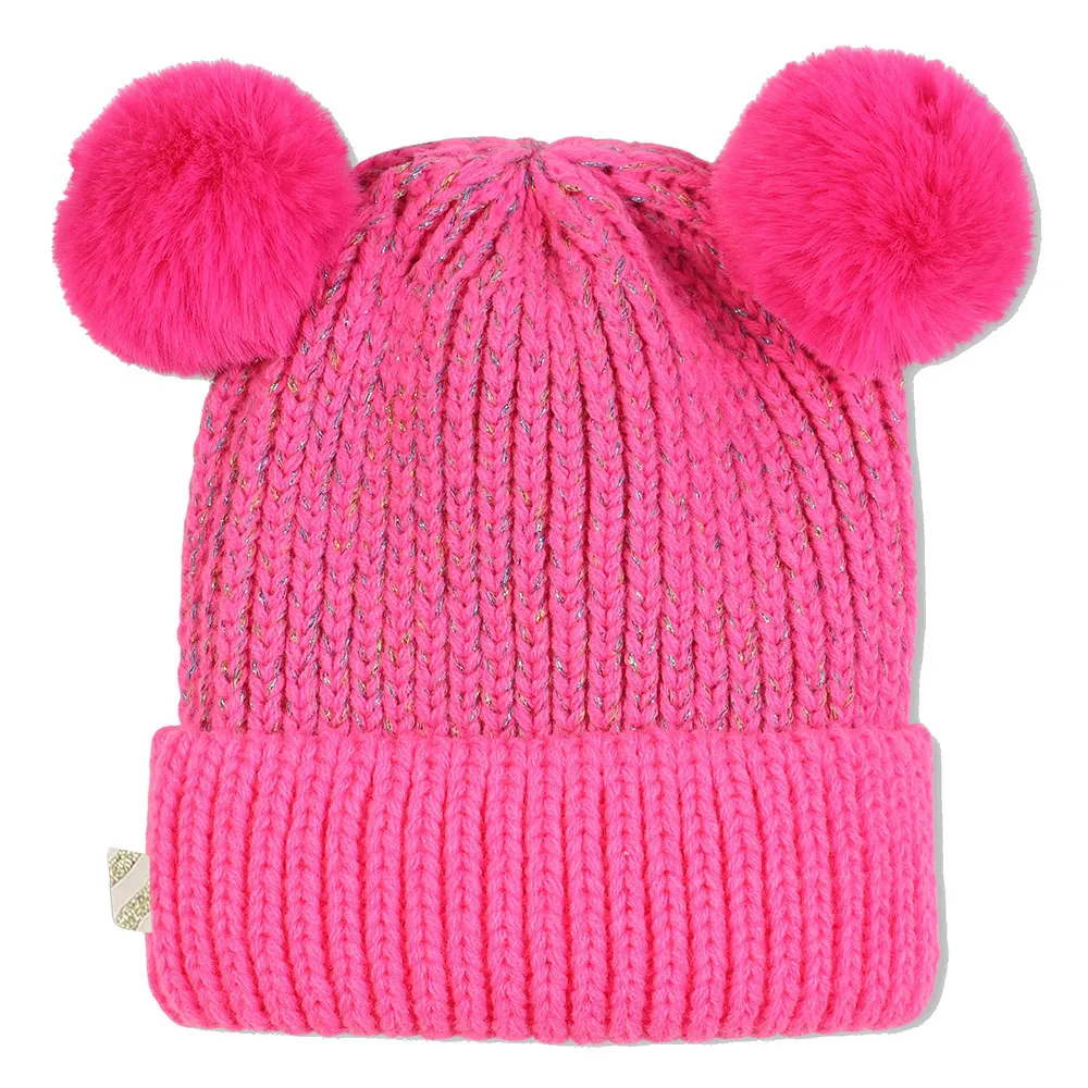 Deze felroze Billieblush meisjes muts met dubbele pompon is een echte blikvanger voor koude dagen. Het warme, zachte breisel combineert comfort met een speelse glitterlook, waardoor deze muts niet alleen functioneel is, maar ook perfect past bij meisjes die houden van kleur en sparkle. Het ontwerp straalt vrolijkheid uit en maakt elke winteroutfit meteen levendiger.