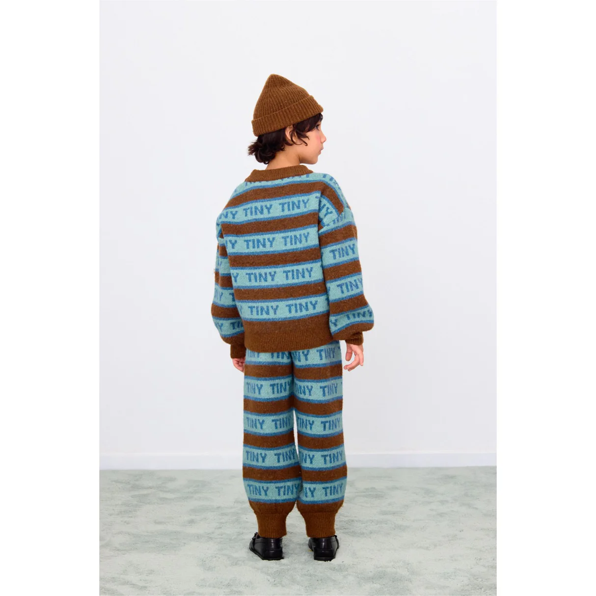 De Tiny Crewneck Logo Sweater in bruin en blauw is een tijdloze toevoeging aan de kindergarderobe, waarin stijl en comfort samenkomen.