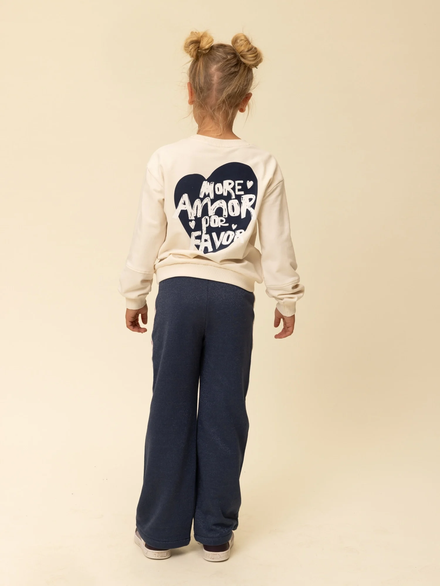 Een bijzonder detail zijn de fancy tapes met kleine hartjes langs de zijkant van de broekspijpen. Dit speelse accent maakt de broek net even anders en sluit perfect aan bij andere items uit de LOOXS Little collectie. Combineer deze wide leg sweat broek eenvoudig met een sweater, hoodie of T-shirt voor een complete outfit.